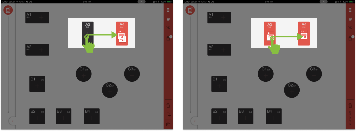 For existing orders, if you need to make temporary adjustments, you can move the table (drag the order to another empty table) or merge the order (combine the order with another existing order) by dragging.Learn More