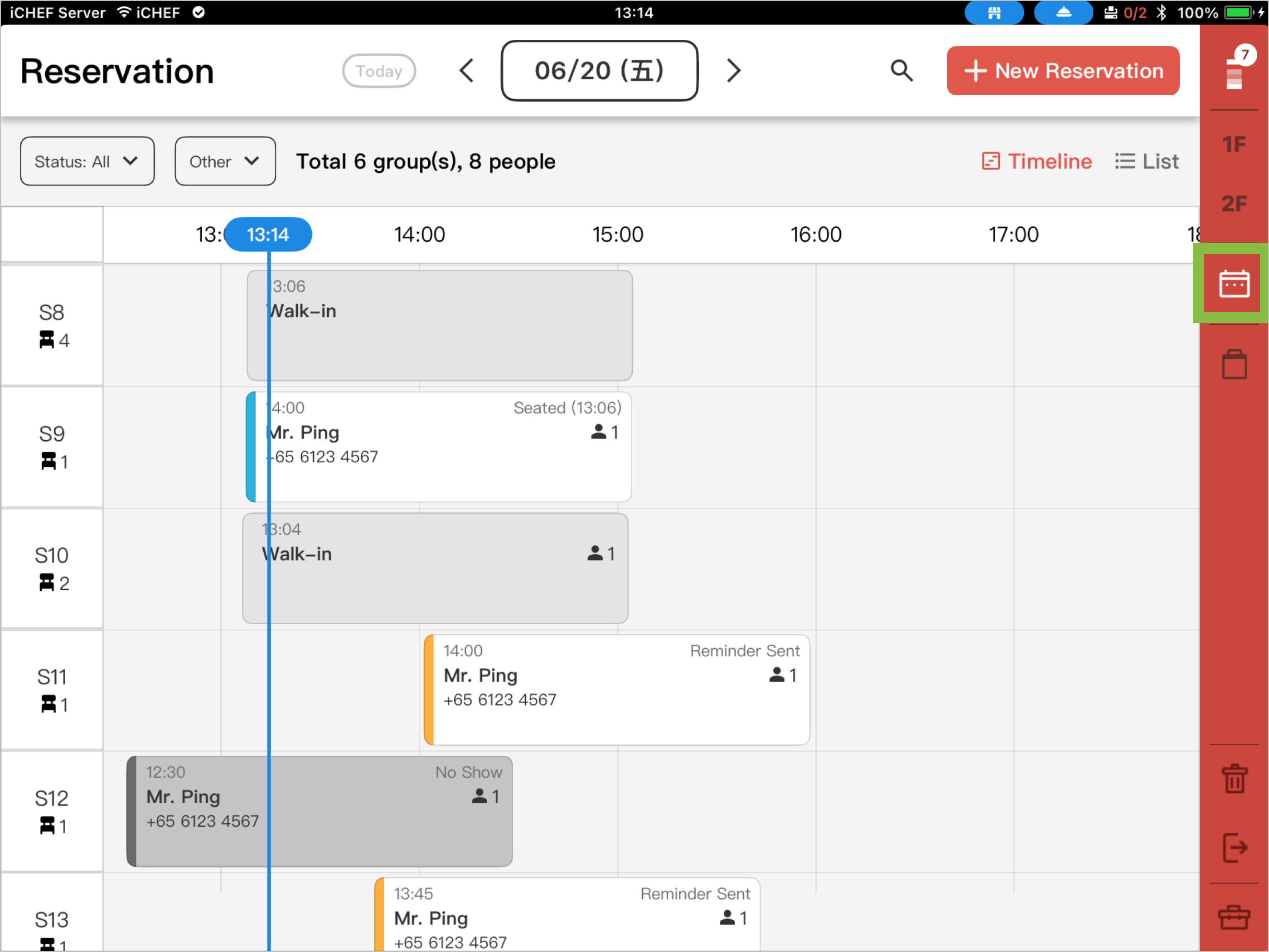 The left section of the Table Status Page is the [Waiting Area] Click the Add Order icon, enter the customer’s mobile number to register for the queue. If the mobile number is already a store member, the system will automatically include the Customer Info. Once a table is available, you can drag the order directly to the table and print the order! Learn More
