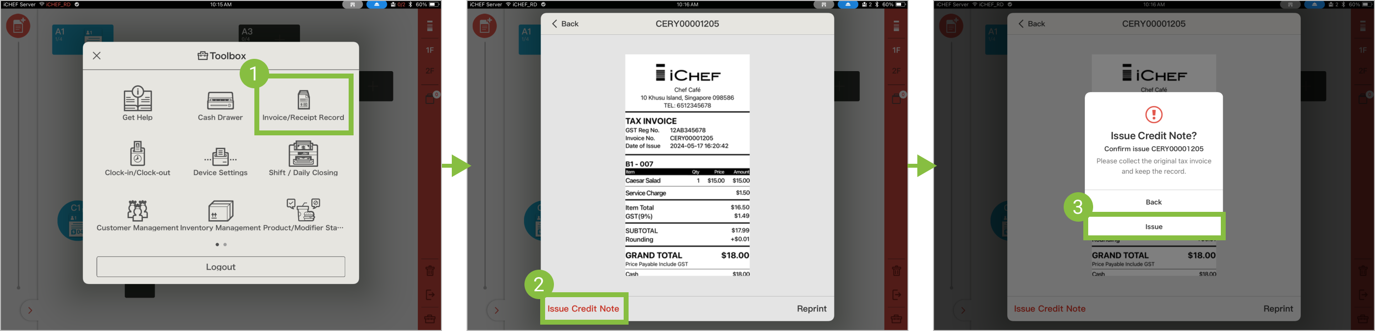 ➤ iCHEF POS app: Toolbox > Invoice/Receipt Record