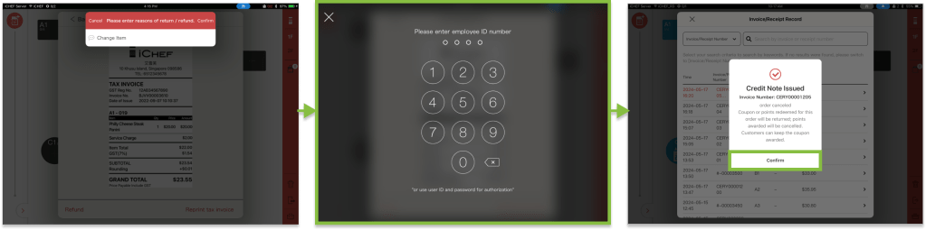 When authorization verification is enabled, issuing credit notes will require an authorized POS passcode. Enabling the verification can help you to track sensitive operations.