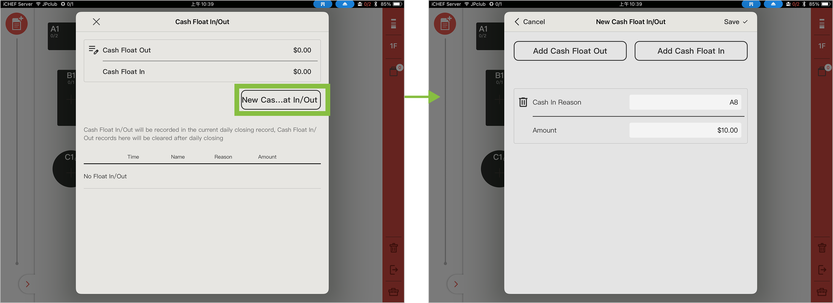 Cash Float In/Out