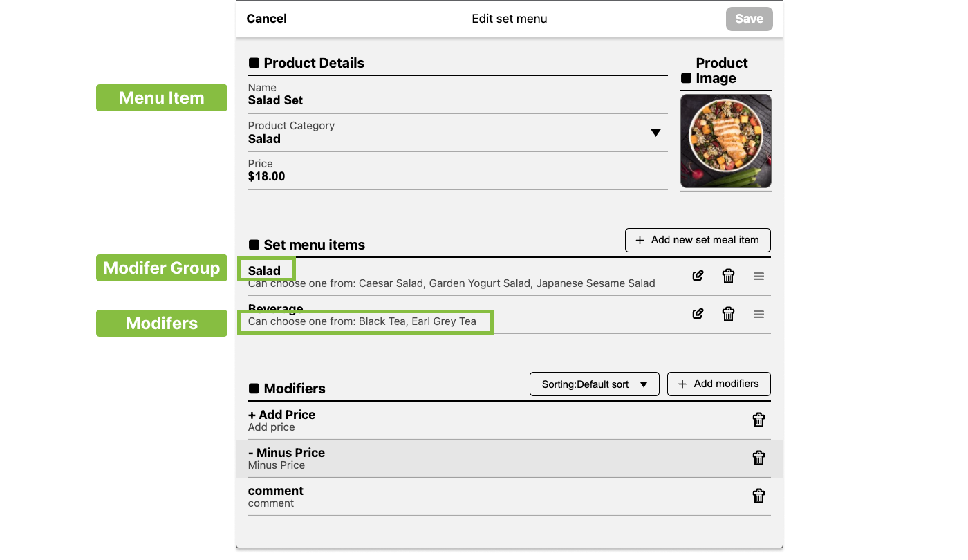A set menu was created in a 3-layer structure on iCHEF backend. However, GrabFood only supports a menu of 2-layer structure. Therefore, importing a set menu requires changing the item format.
