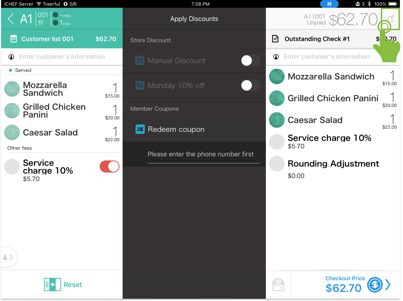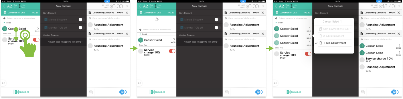 Splitting bills in iCHEF POS app takes only a few taps. You can split the total amount evenly, or breakdown the bill items by items.