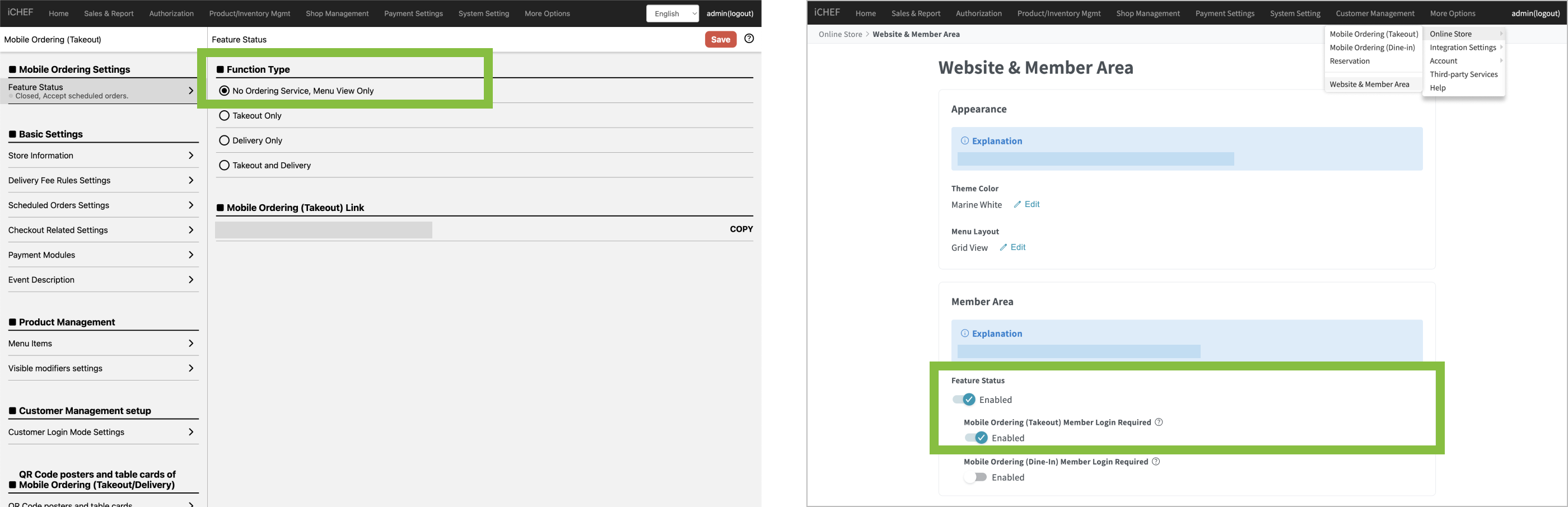 You can set up member login page without offering online ordering service. Simply leave [Service Type] as [No Ordering Service, Menu View Only].