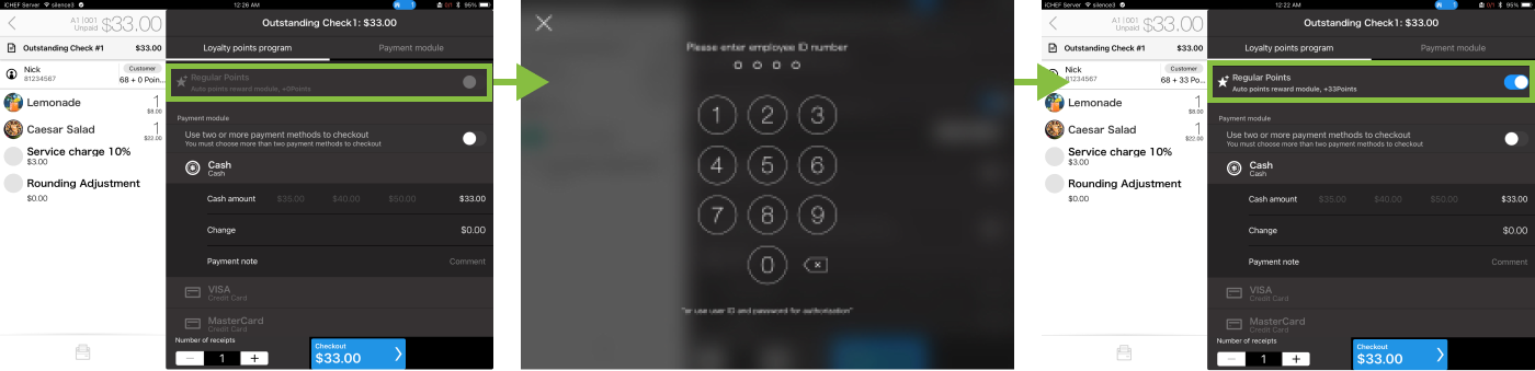 When toggled on, staffs will have to enter passcode to enable/disable loyalty program on iCHEF POS.