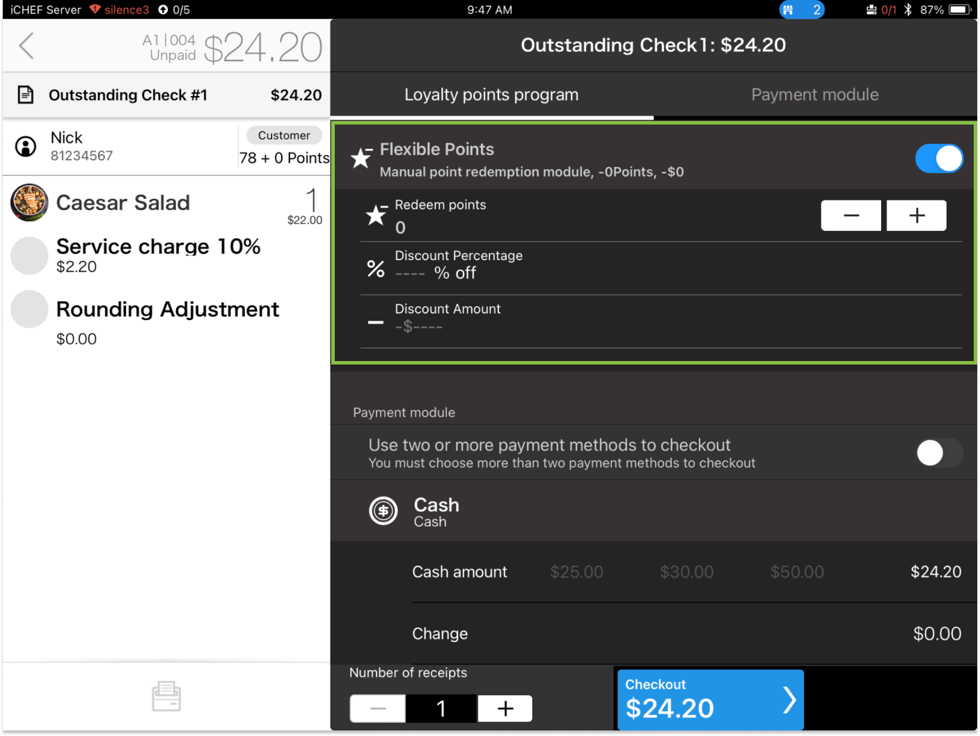 You can always redeem points manually on iCHEF POS as long as it’s an unpaid order.