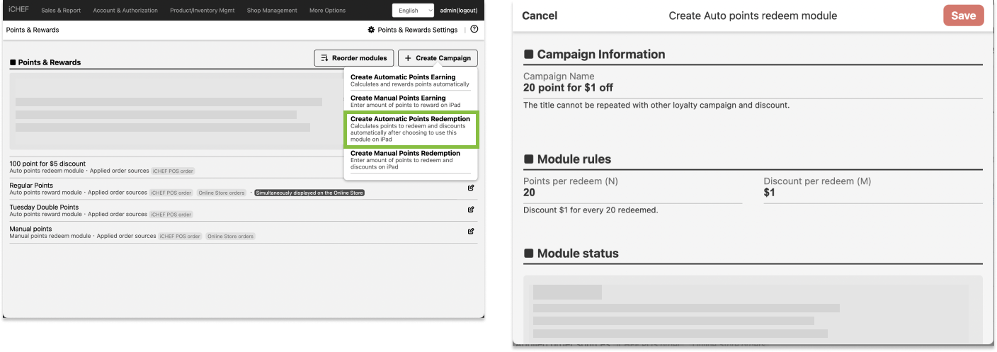 - Click [Create Campaign] and select [Create Automatic Points Redemption]