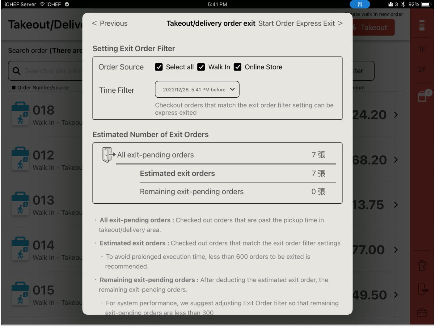 - Click [Start Order Express Exit] and complete the authorization verification.