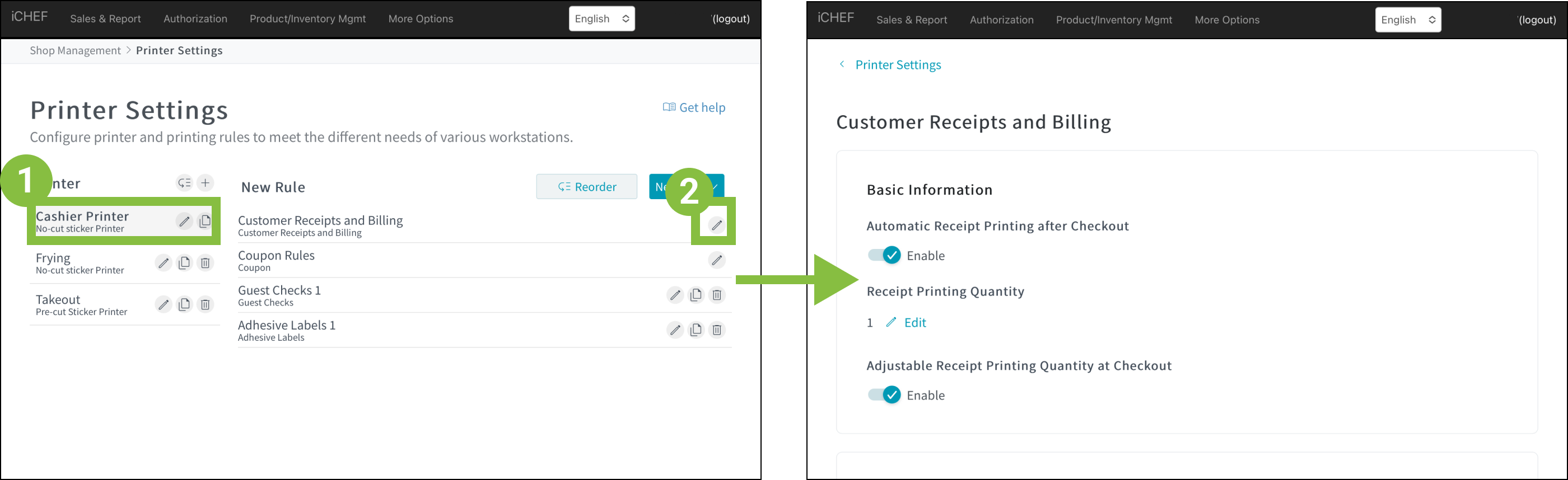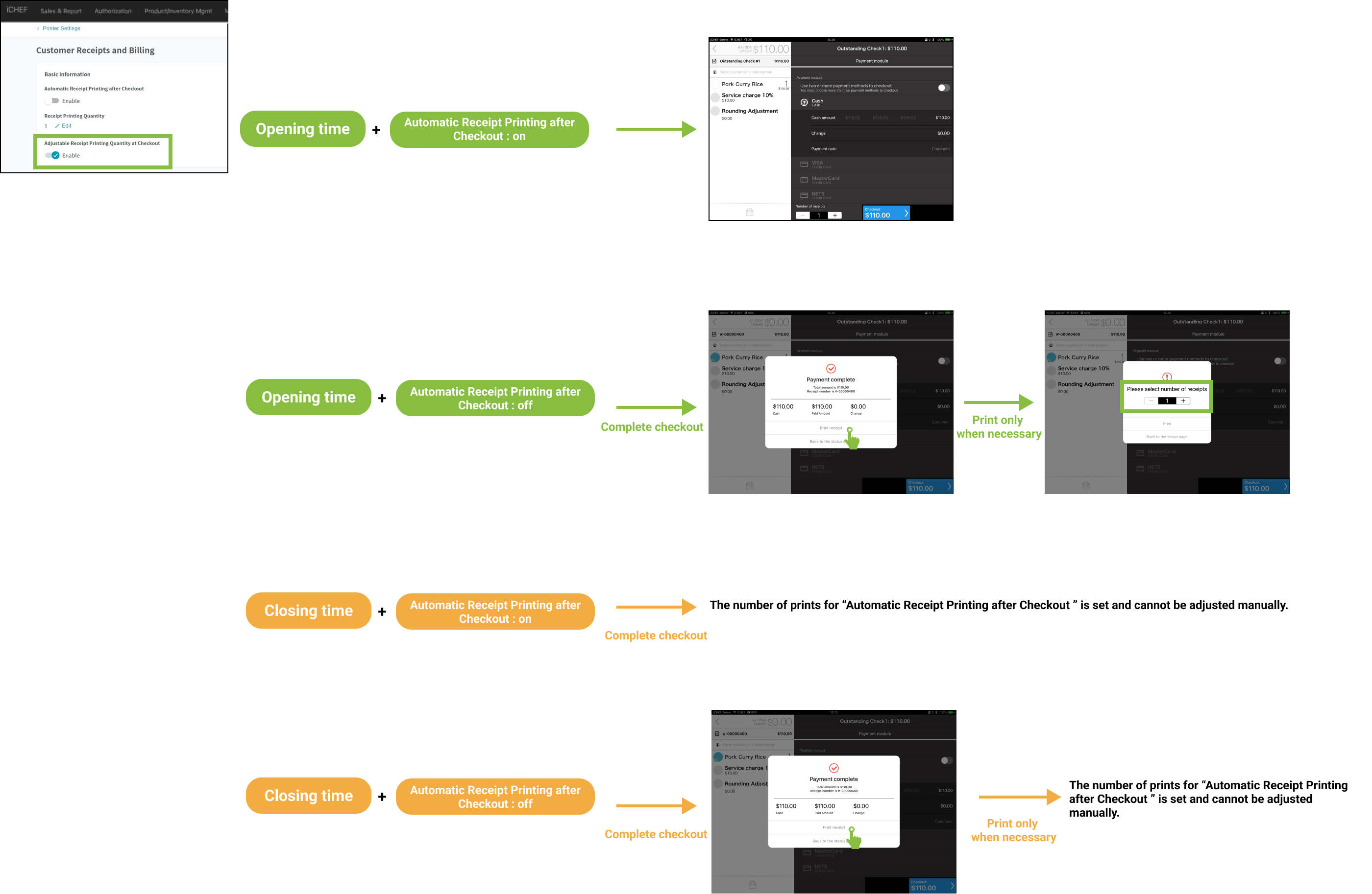 Perform a shift/daily close out to wrap up a shift or a day of business. The Shift/Daily Closing Record will be printed under the “Customer Receipts and Billing” rule. For more details, please refer to: [Accounting] Sales Record & Management