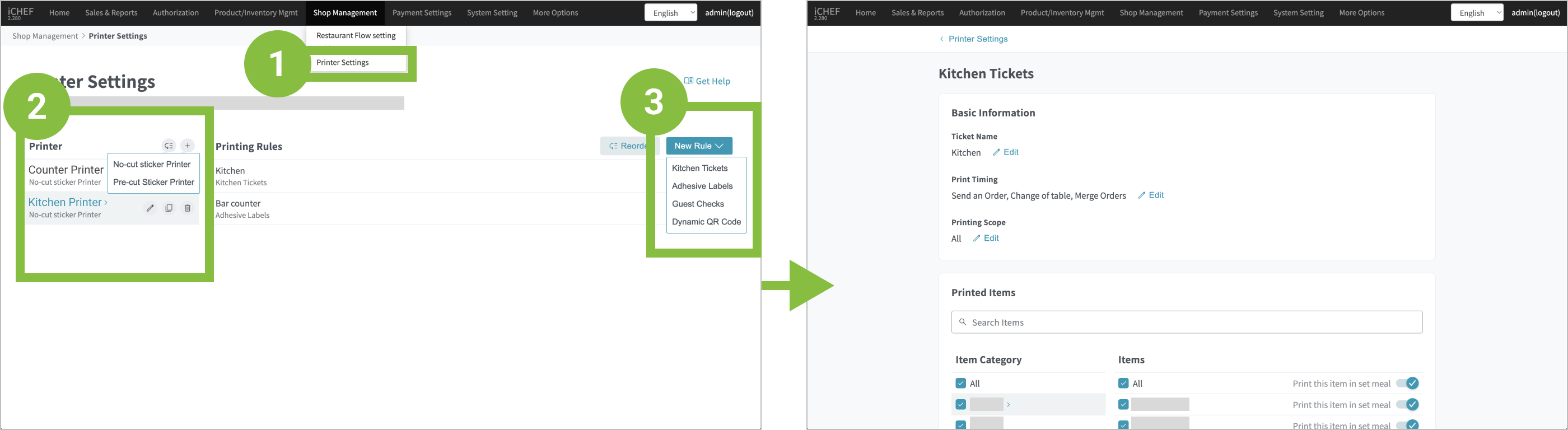 - In the backend: Go to [Shop Management] > [Printer Settings].