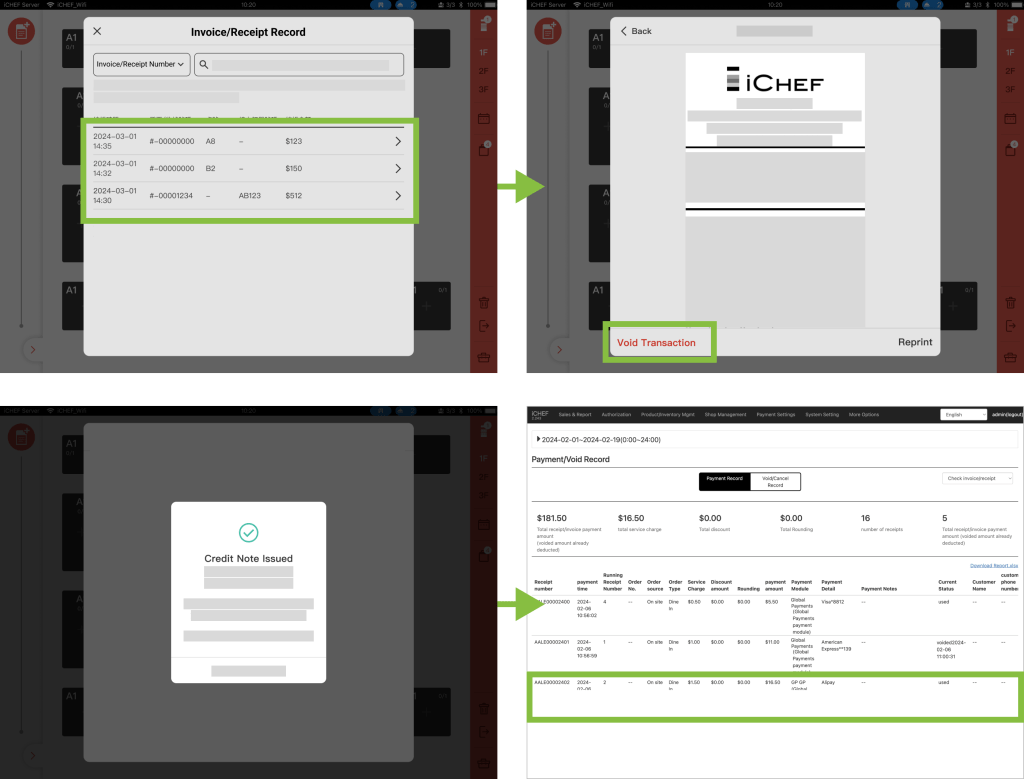 ➤ iCHEF POS App UI: [Toolbox] > [Transaction Enquiry and Voiding]