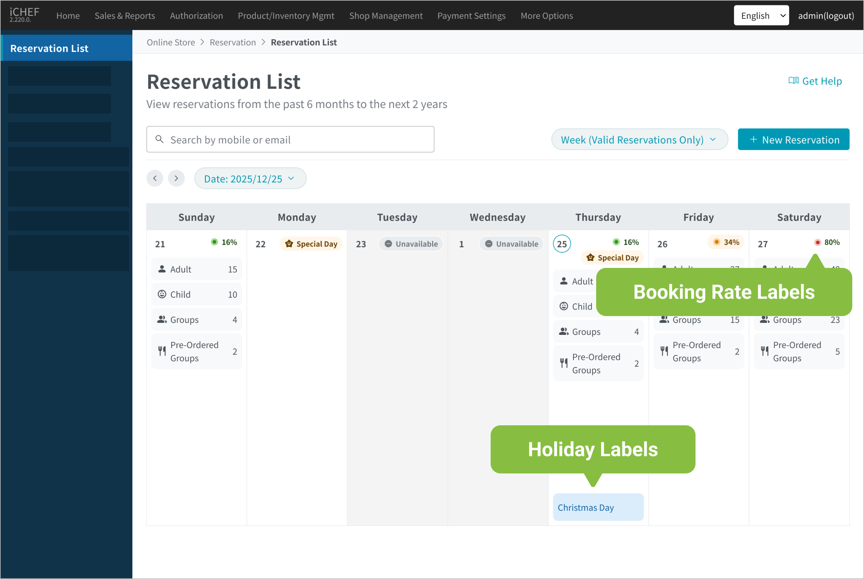 ➤ Backend Path: Online Store > Reservation > Reservation List