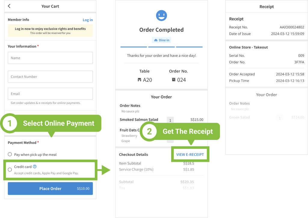 - Online Payment: When you pay for your purchase online, an e-receipt will be created.