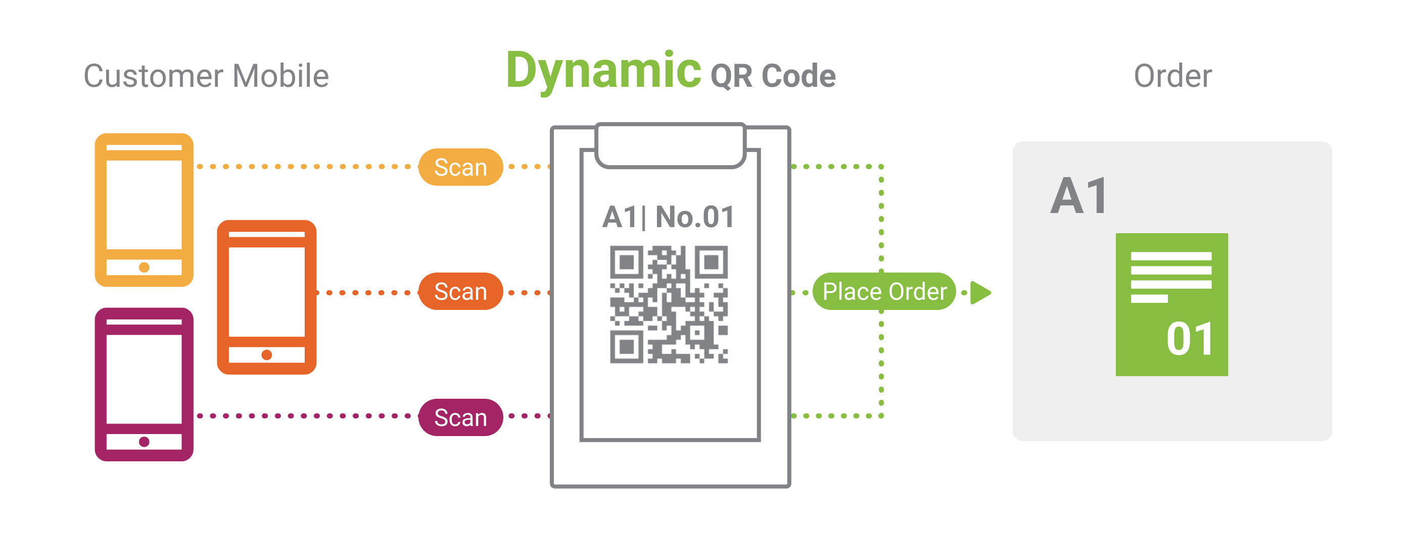 The dynamic QR Code is exclusive for each group of customers and will expire after checkout. No matter the customers scan the QR Code, place order or order additional items with how many devices, all of the content will be merged to the same order.