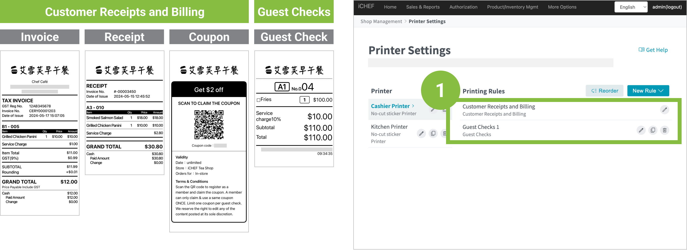 The headers of receipts, coupons and customer copies can all be replaced with your logo! This feature not only makes it easier for customers to recognize your brand, but also turns these invoices into a walking advertisement.