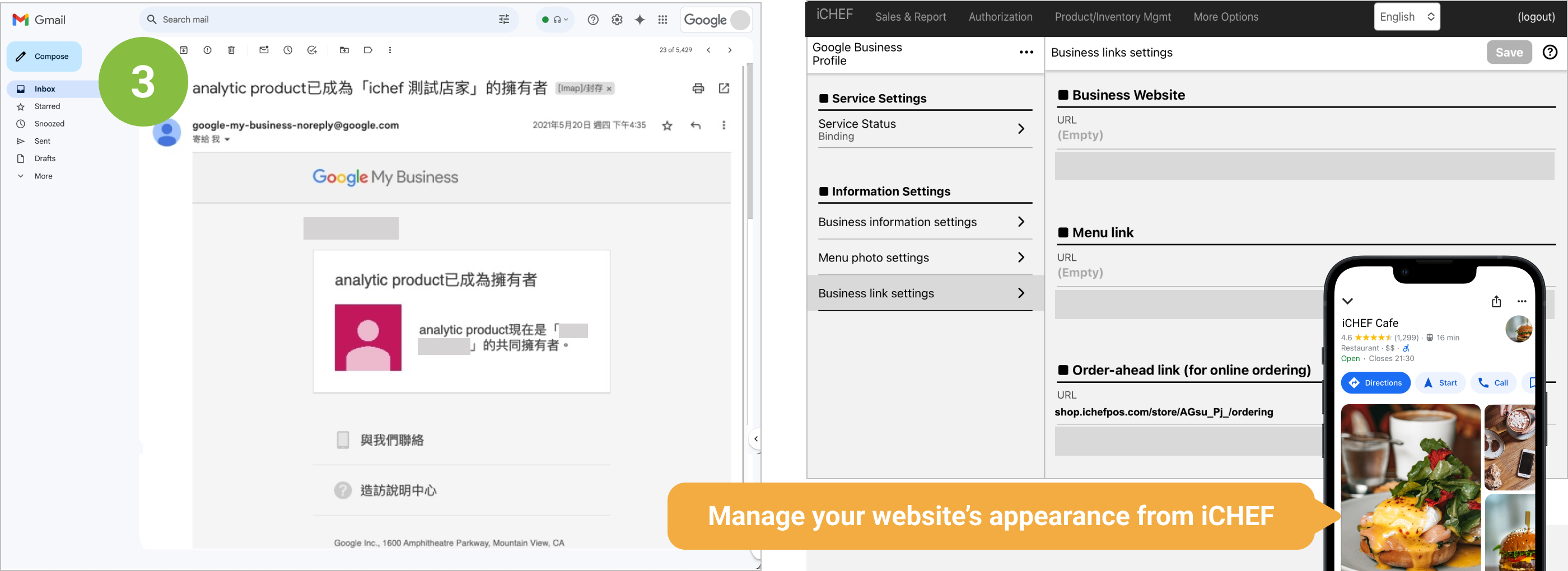 ➤ Bind your Google business profile with iCHEF in 3 steps:
