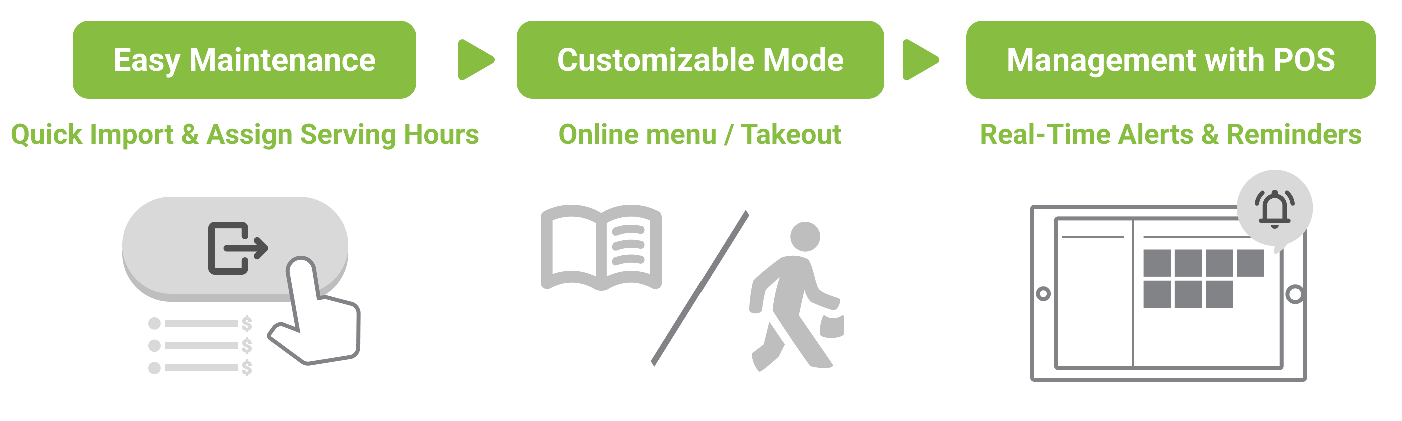 Quickly create a dedicated website using your existing POS items! And by assigning Serving Hours, the menu will automatically switch. All changes will be instantly synchronized to the webpage, making menu maintenance easier and more effortless.