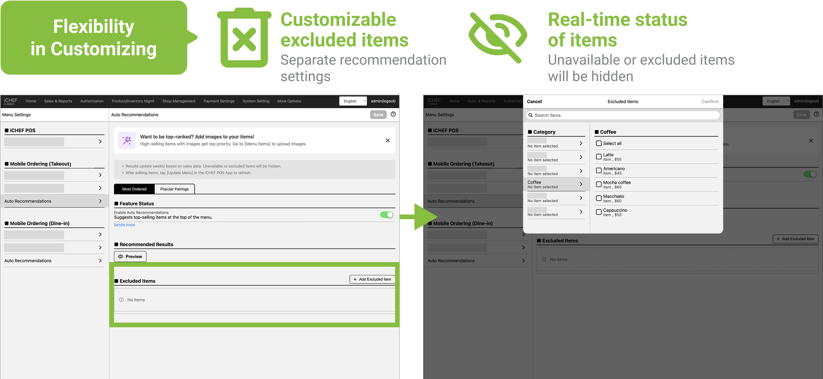 If there are items you don’t want to promote, you can go to the backend to customize and exclude them, giving you the flexibility you need for your operations.