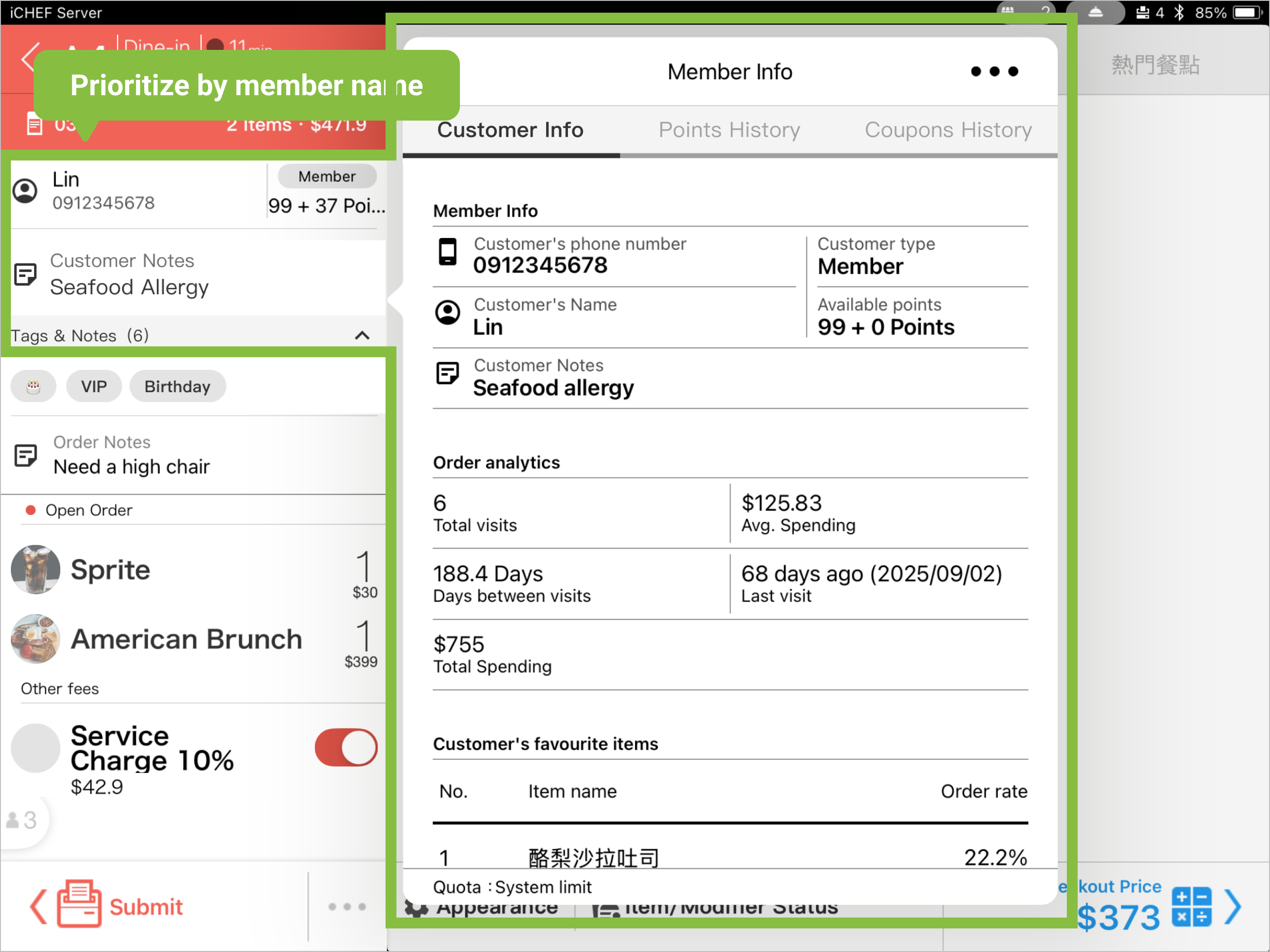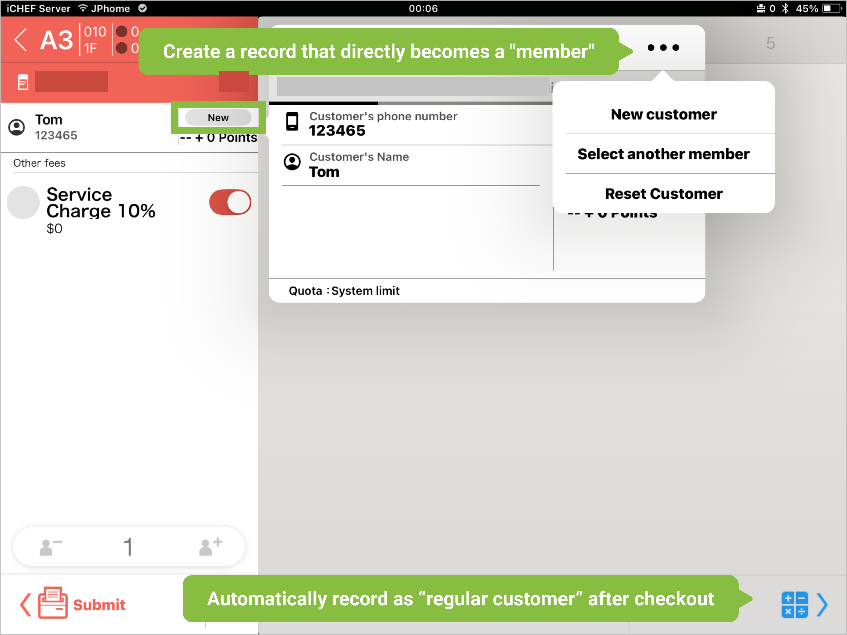 - Existing Customer Data: A [Member] or [General Customer] tag will be displayed. The system will integrate and display existing member data.