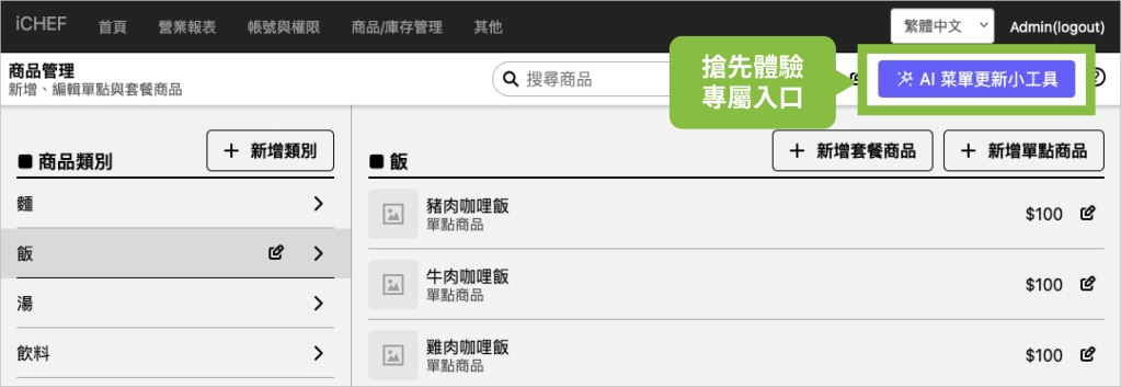 For early access stores, switch the iCHEF backend language to Traditional Chinese to see the exclusive entry.
