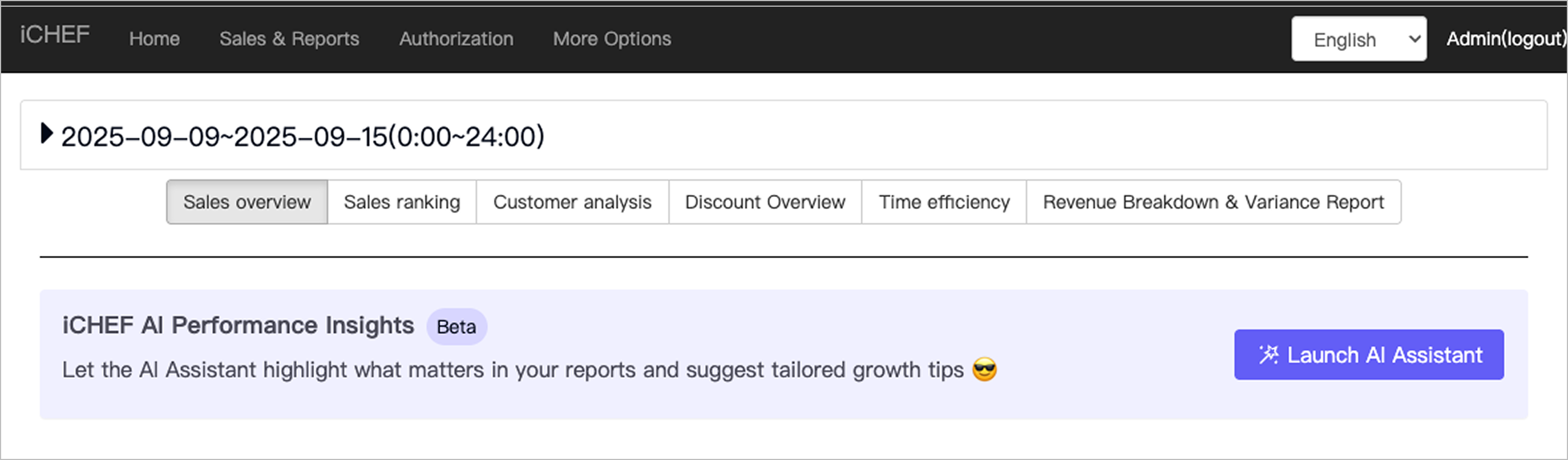 ➤ Backend Location: Sales & Reports > Current Status or Sales Analysis > Launch AI Assistant