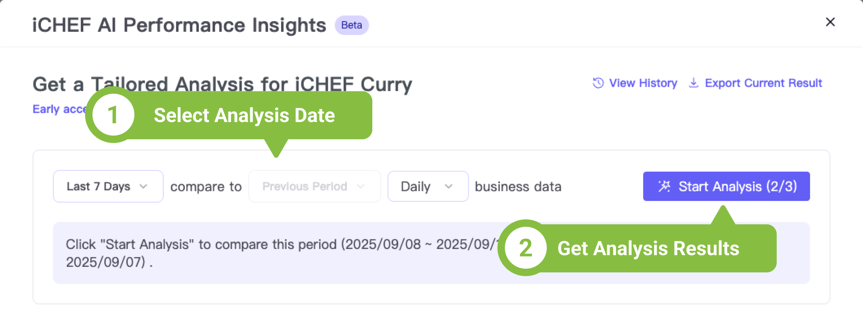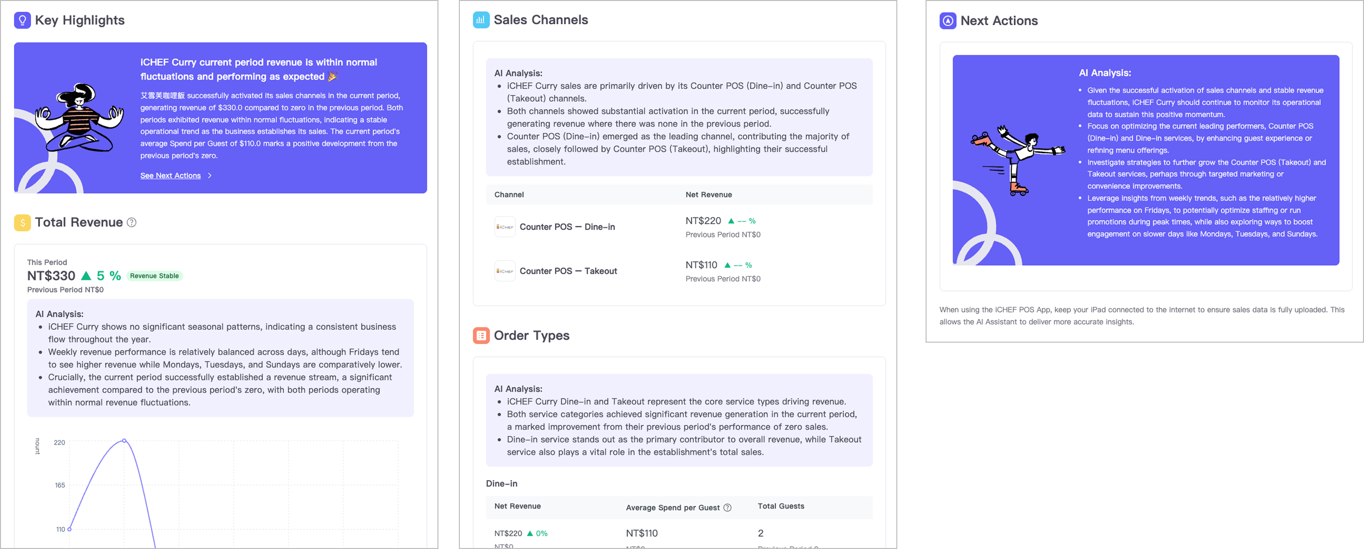 To ensure the most accurate analysis, AI only calculates using complete 24-hour data. Therefore, today’s business data can be analyzed the next day.