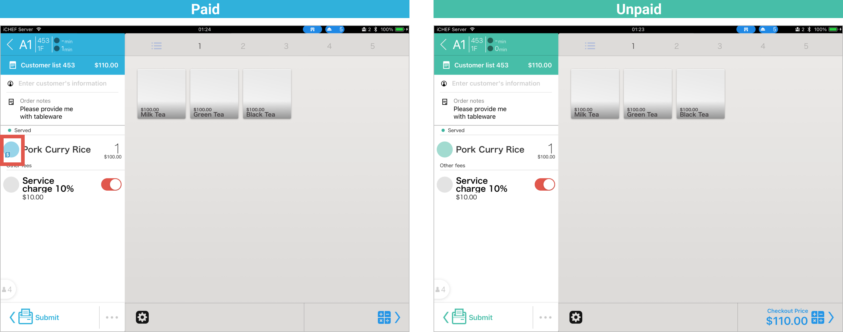 Customers are free to order additional items through the website before checkout. For the restaurant’s staff, this action can be done by adding items to the order displayed on the POS. The order is displayed as the example below when including additional items: