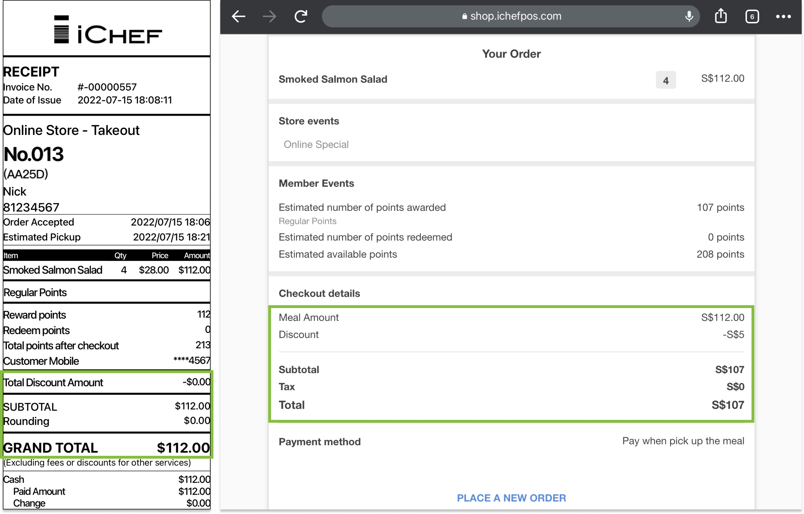 If an unpaid order from Online Store is applied to a deleted/adjusted discount, customers might see a different checkout amount on their screen. Please confirm the actual amount on iCHEF POS.
