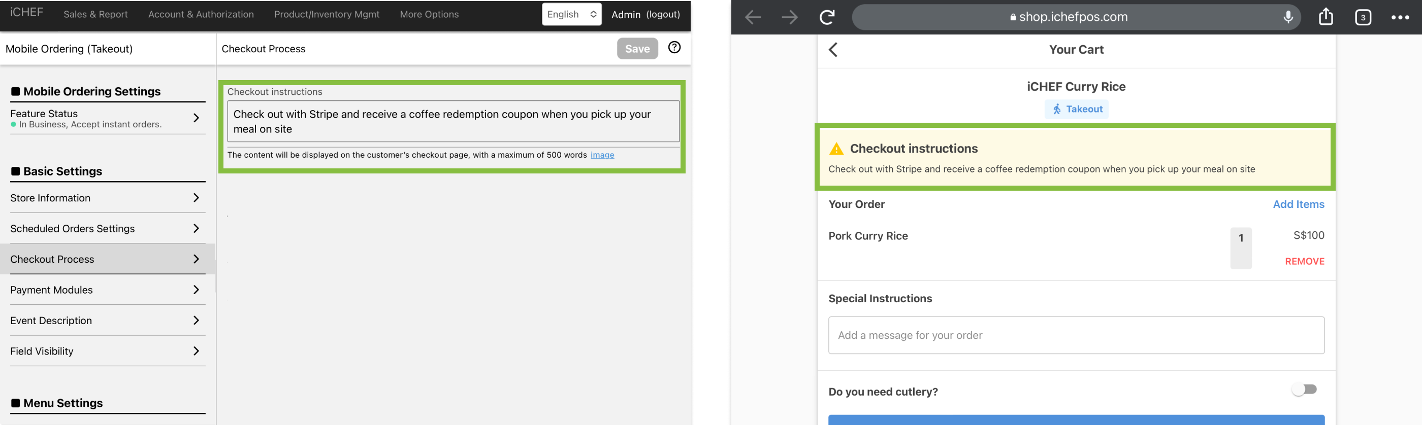 - Please go to Cloud Restaurant > Takeaway/Delivery Ordering > Checkout Process