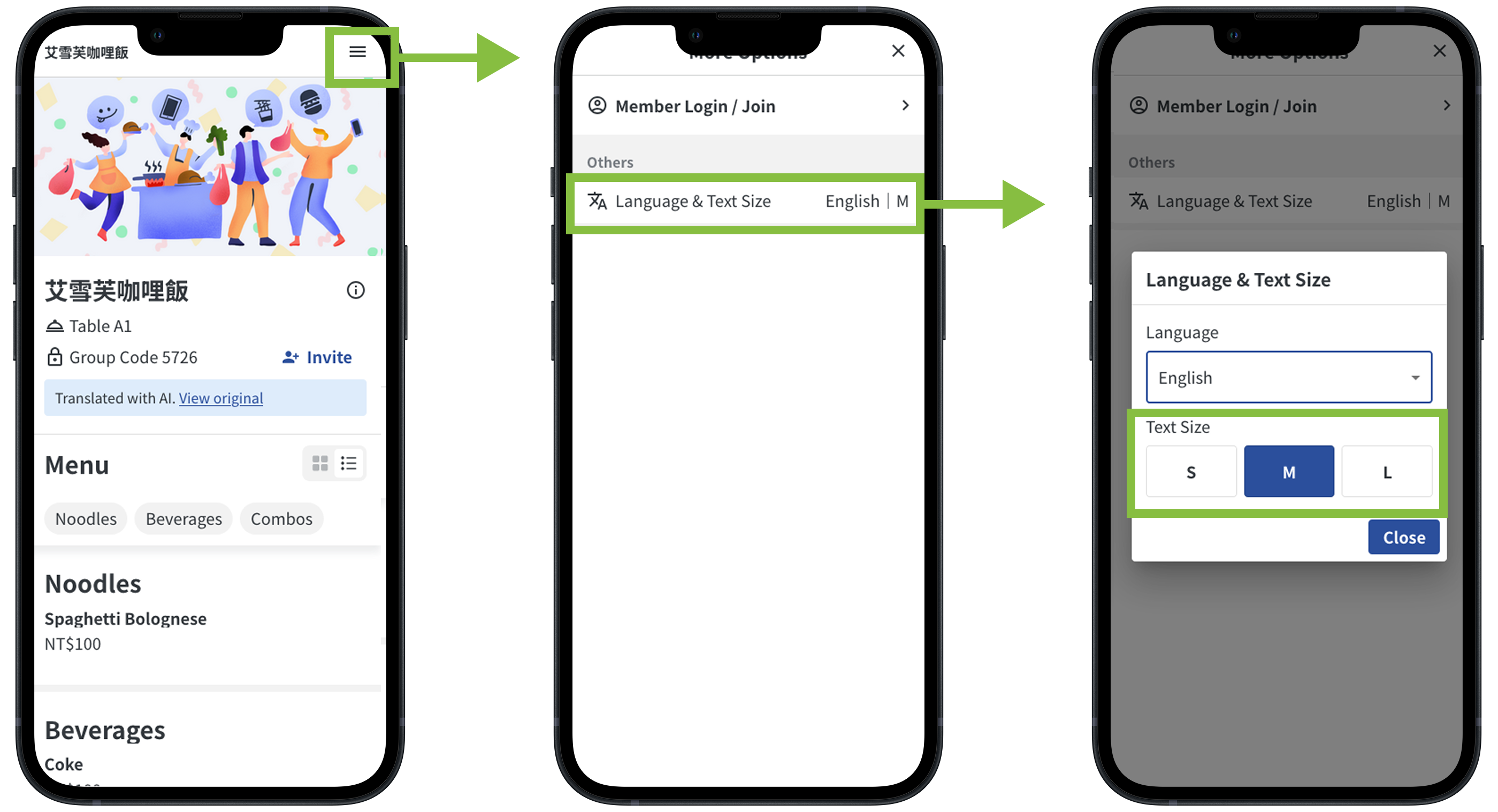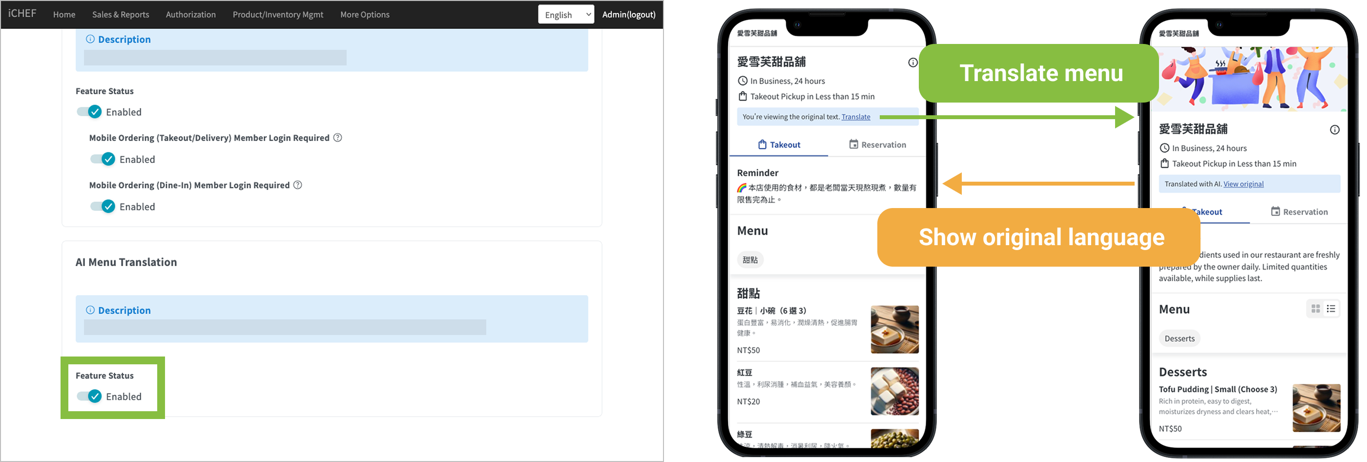Consumers can also click “Translate” to let AI help translate the menu content.