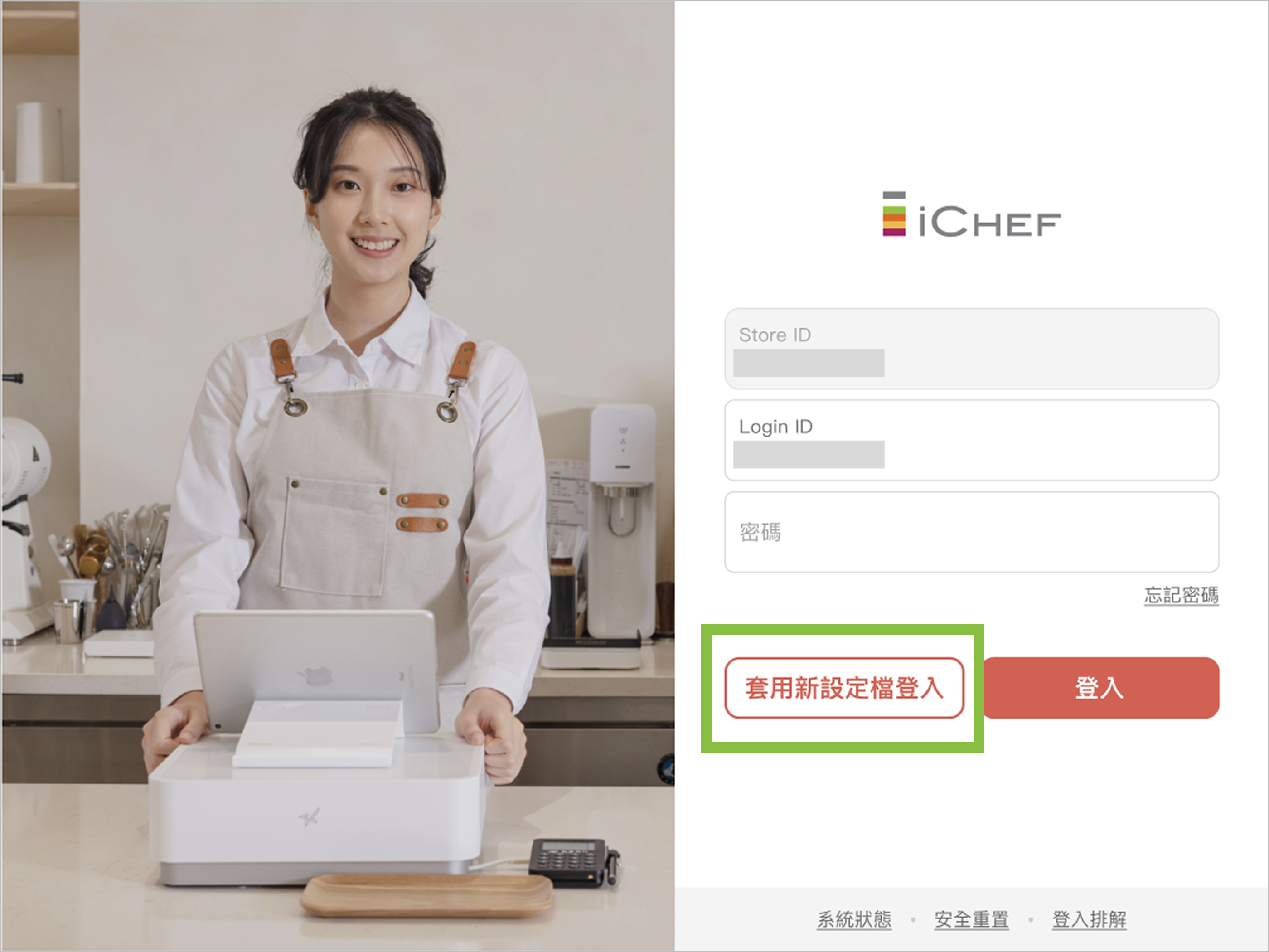 請將 iCHEF POS 套用新設定檔登入,使 iCHEF POS 能取得設定資料後,消費者即可開始使用預約訂單。