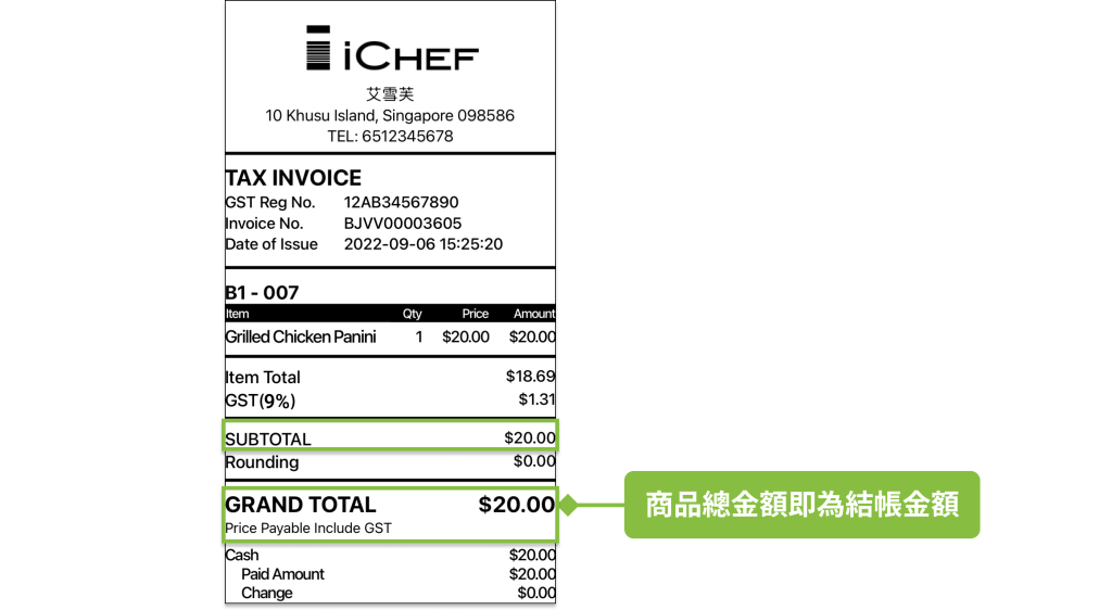 當 GST 設定完成後,即可在結帳後自動開立 GST 發票。本篇文章將分別說明已註冊 GST 與未註冊 GST 的店家在結帳後,所開立的發票或明細資訊。