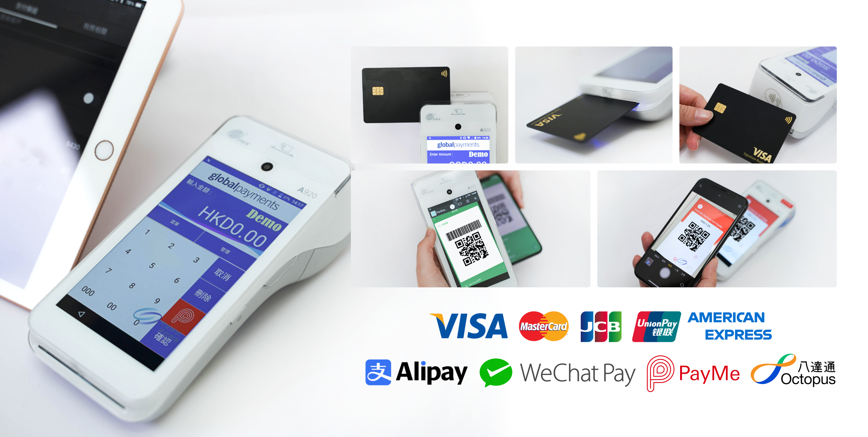 在 Global Payments 刷卡機上可以接收信用卡、支付寶、微信支付等,多個行動支付方式,並針對不同支付支援刷卡、感應、掃描、生成付款條碼 等形式收款,讓你在同一台設備上就能完成各式交易。