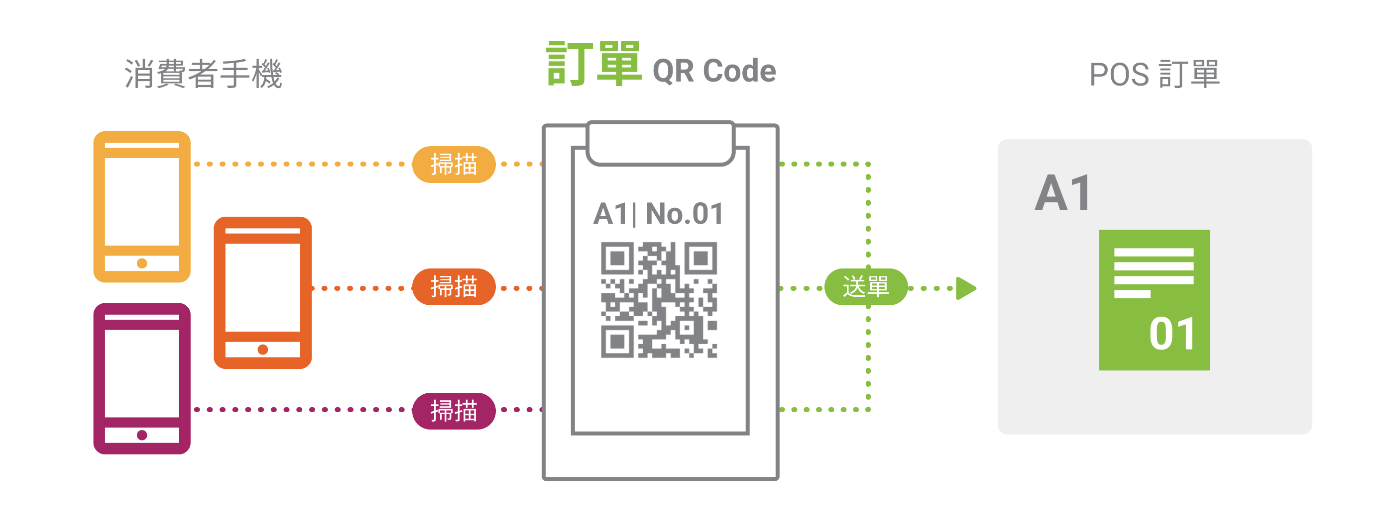 訂單 QR Code 專屬於每組客人,為獨立的一張訂單,出店後自動失效。因此不論幾個裝置掃描、送單或加點,內容皆會合併在同張訂單。