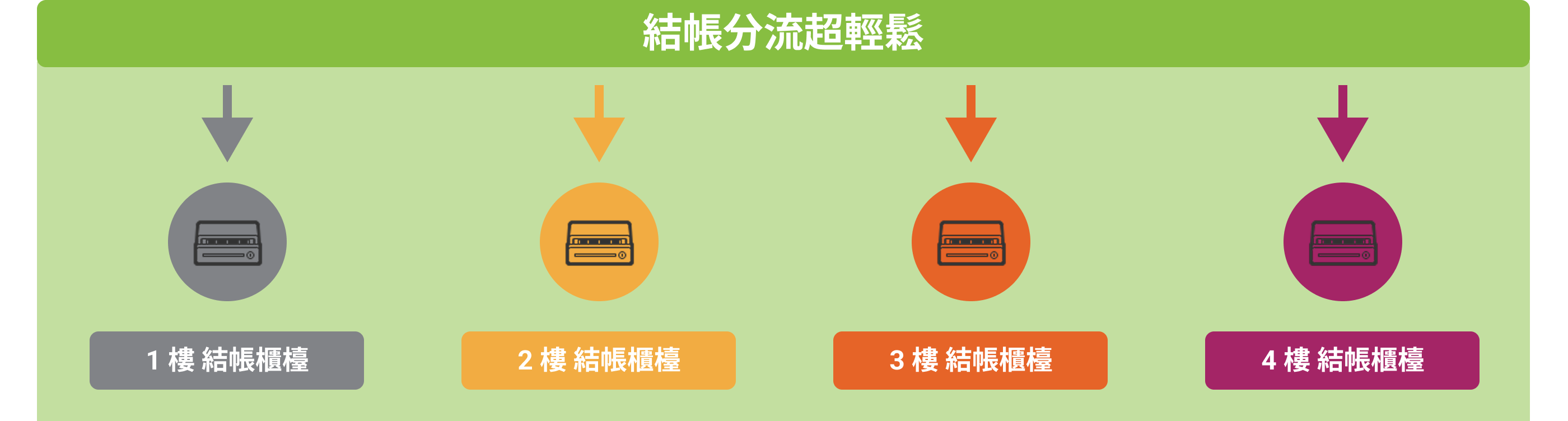 ➋ 每個結帳口皆有獨立的錢櫃或刷卡機