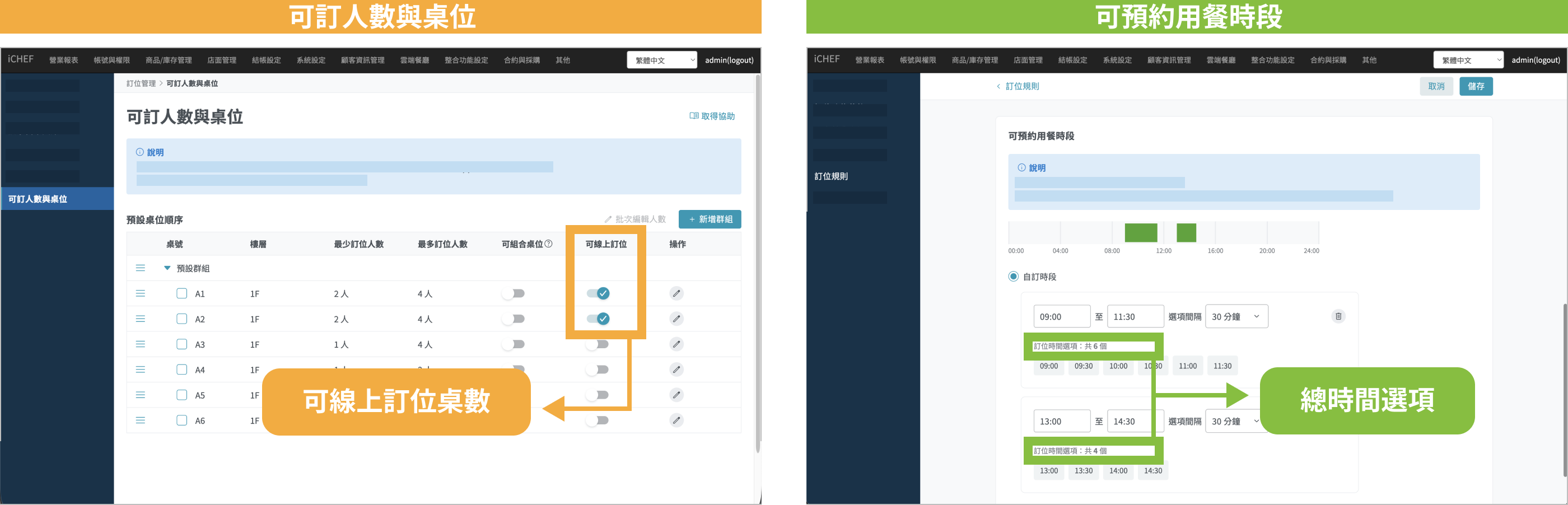 可預訂總數 = 可線上訂位總桌數 × 訂位時間選項總數