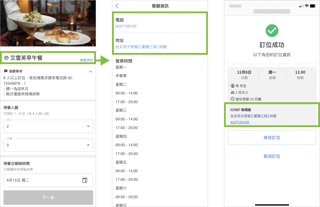 提醒:「可預約用餐時段」不是營業時間喔!記得把用餐時間算進去。點我看範例