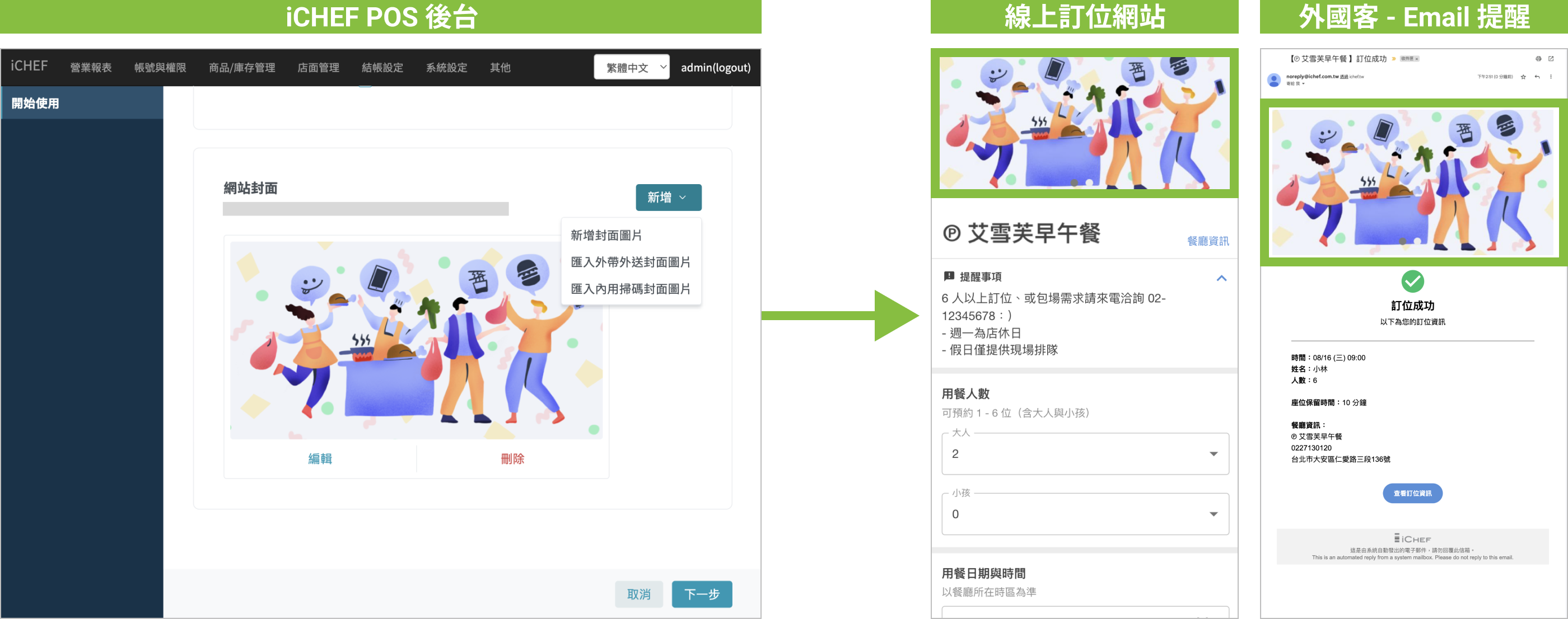 新增的封面圖片,將顯示在「訂位網站首頁」與「訂位通知信」中。
