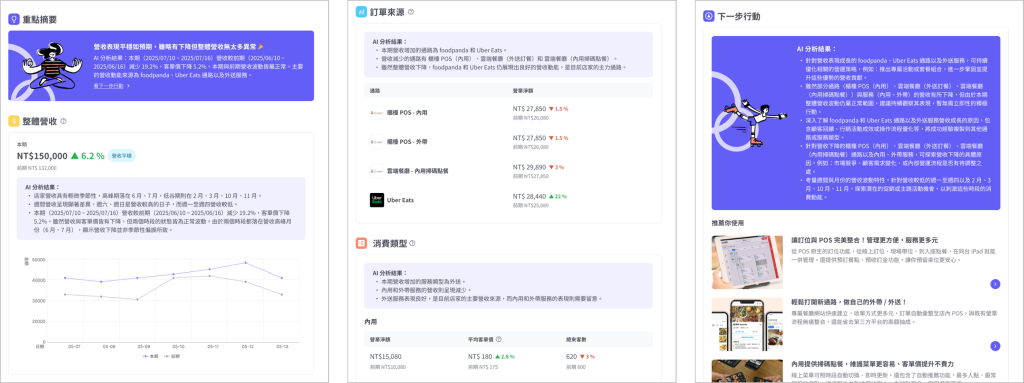 只要 2 步驟,即可獲得專屬於你的營業分析報告,並提供重點摘要與行動建議,輕鬆掌握經營方向。