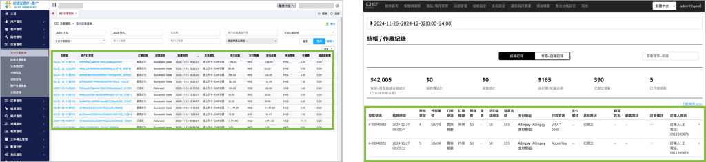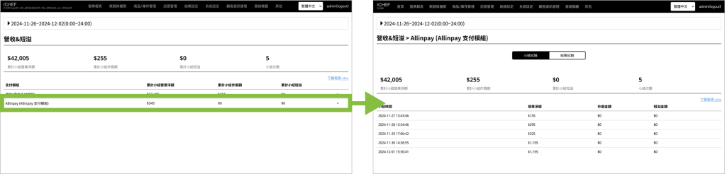 若已處理完所有雲端餐廳未確認的訂單,卻仍出現短溢狀況,請進一步比對 Allinpay 後台與 iCHEF POS 後台報表的每一筆交易紀錄,以找出差異來源。