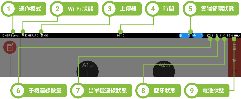 此篇文章將會說明 iCHEF POS 系統狀態列顯示的資訊與各種行為,包括:運行模式、WI-Fi 外網連線狀態、出單機連線狀態、營業資料上傳至雲端狀態 … 等說明。