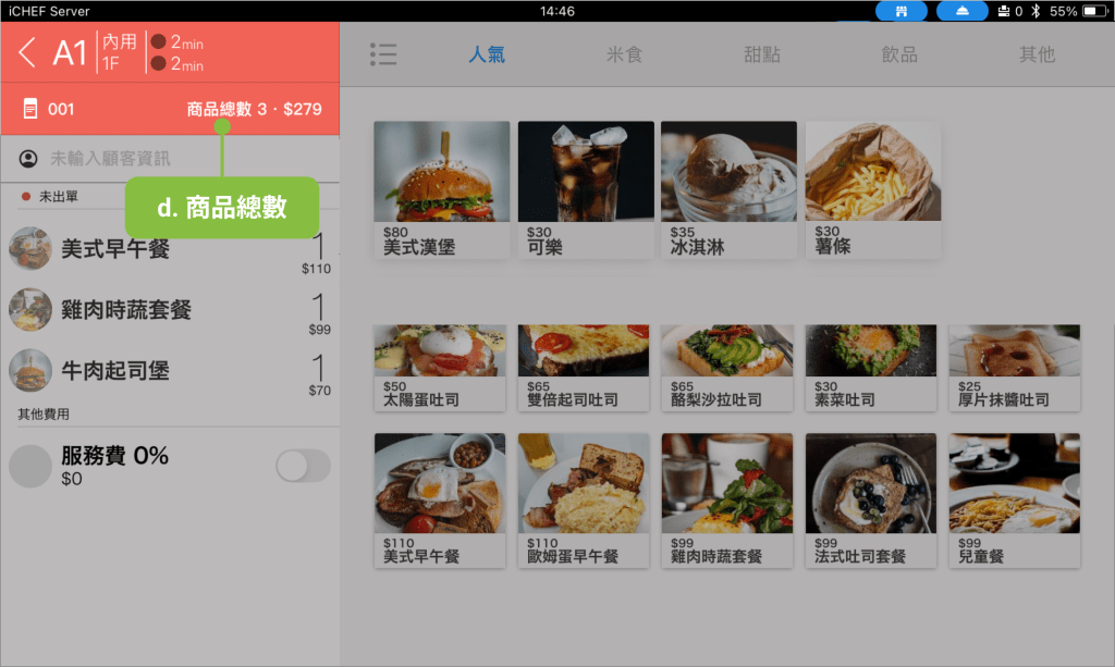 - 商品總數:可快速看到「單點商品」及「套餐商品」的總數量。