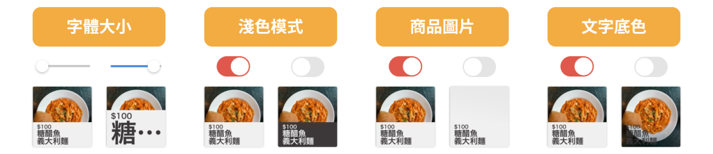 - 文字底色:開啟時,商品名稱下方會加上底色,讓文字更好閱讀。