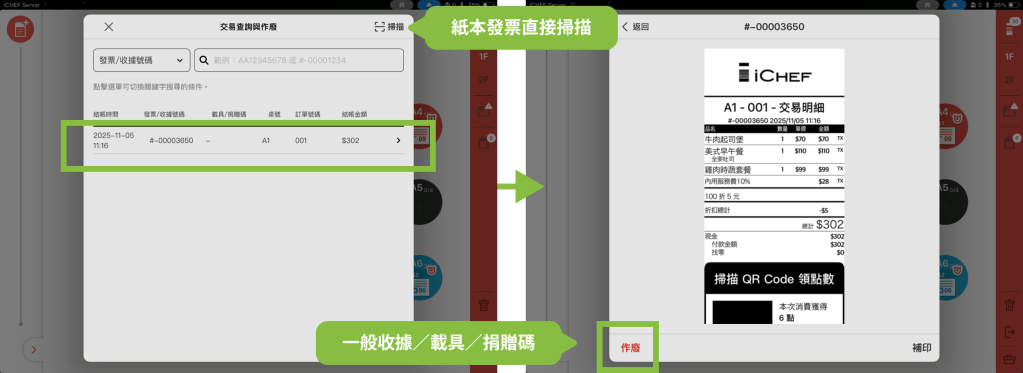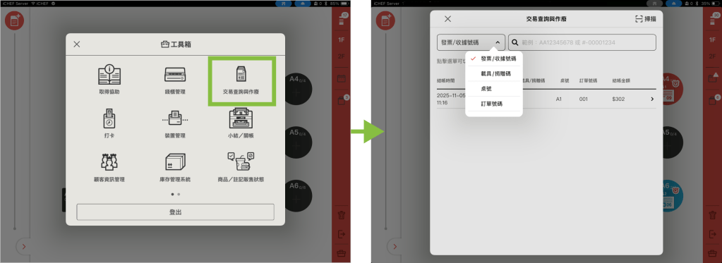 ➤ iCHEF POS App:工具箱 > 交易查詢與作廢