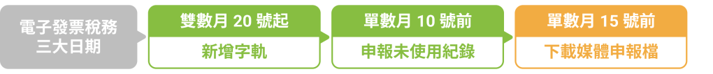 無論是「期配」或「年配」店家,皆須於每個單數月 1、3、5、7、9、11 月份的 15 號前,至 電子發票整合服務平台 下載上一期的媒體申報檔,提供給店內稅務處理人員進行稅務申報。