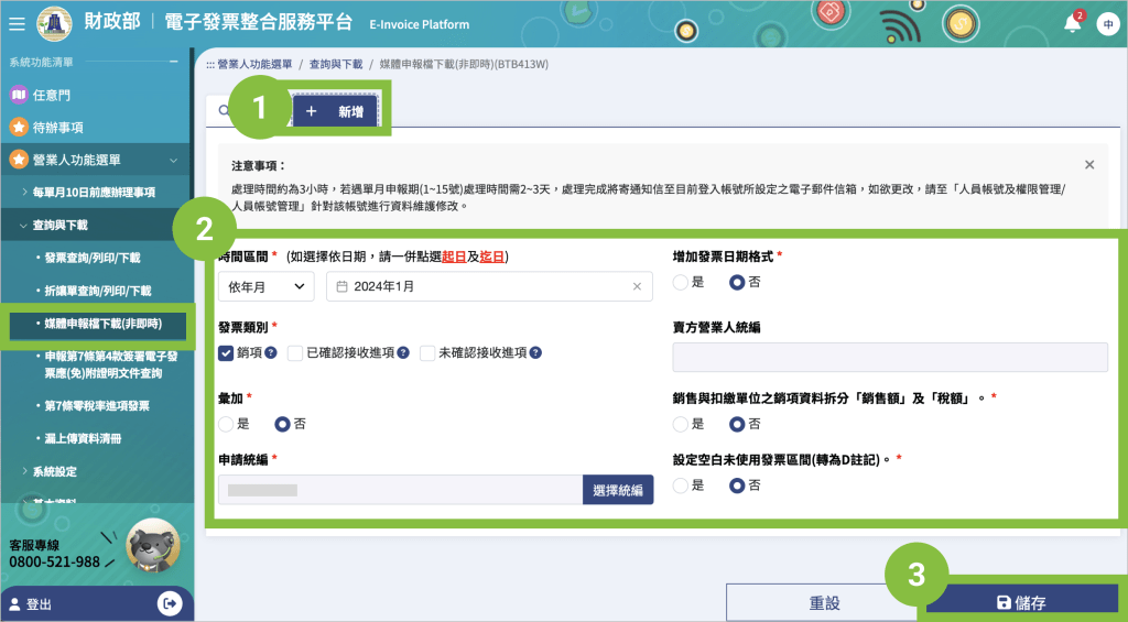 ➤ 下載位置:電子發票整合服務平台 > 營業人功能選單 > 查詢與下載 > 媒體申報檔下載