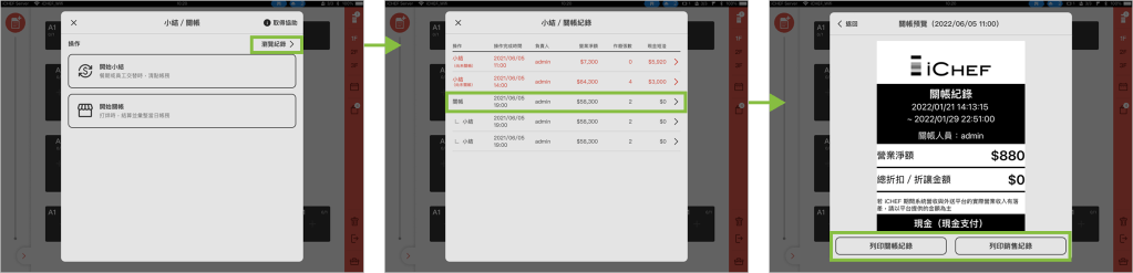 營業結束後,可透過關帳完成當日帳務總結,彙整所有小結,並清除 iCHEF POS 中的暫存資料,提高後續使用的順暢度。