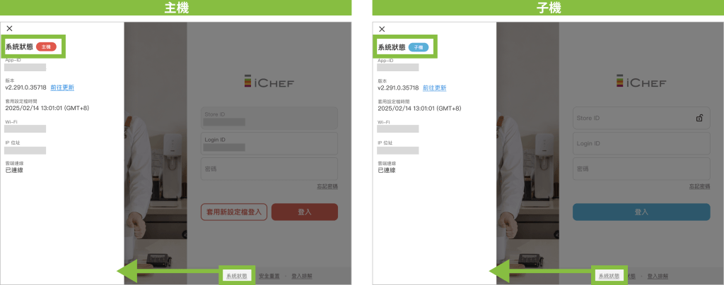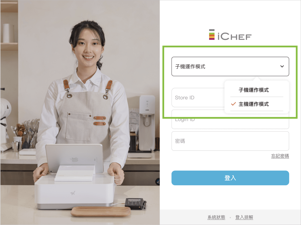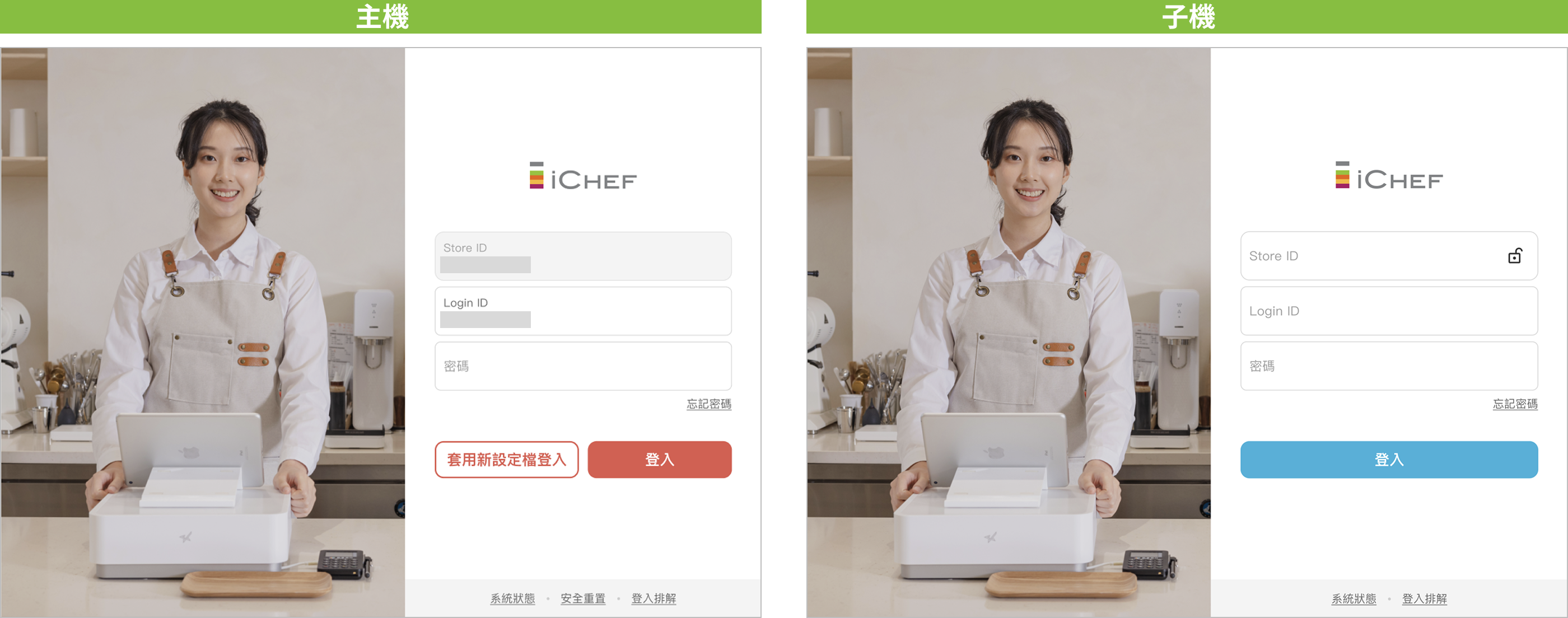 子機的系統資料將由「主機」提供,因此使用子機前須確保主機已登入 iCHEF POS App。