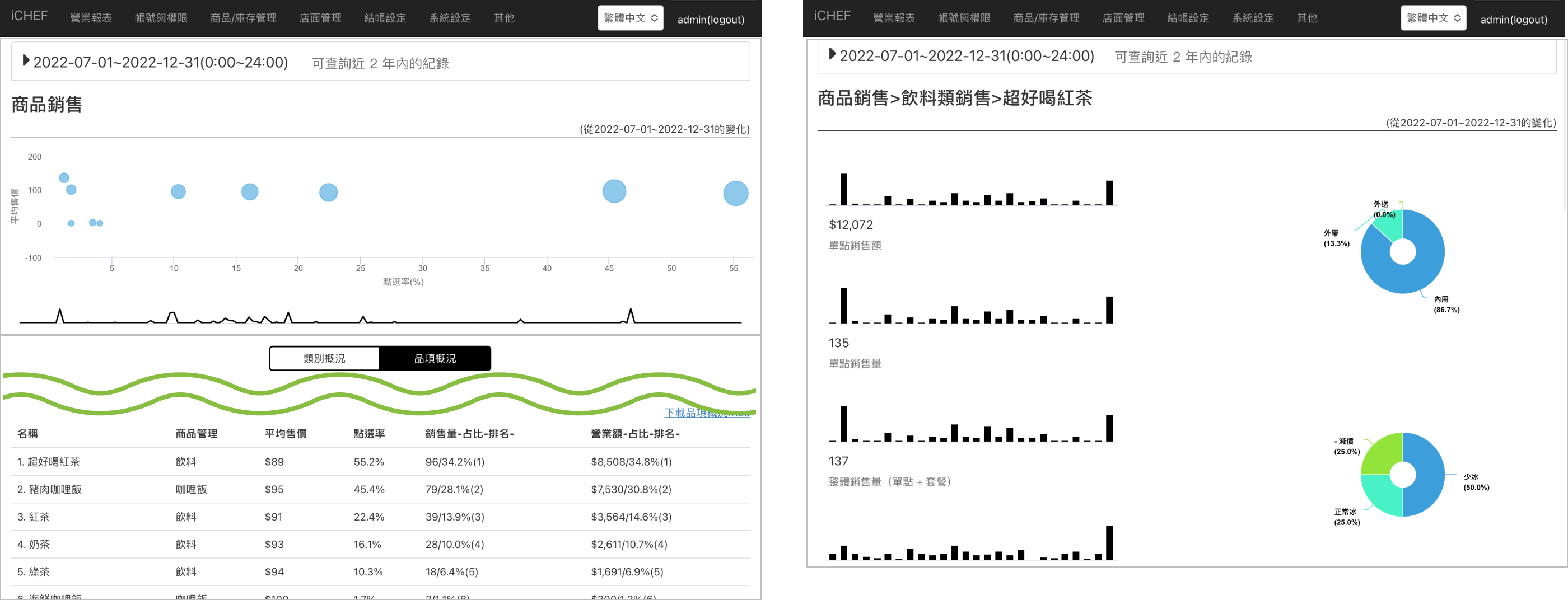 商品銷售報表可以協助店家知道店內熱門商品,並且可以查詢消費者選擇套餐時的搭配。