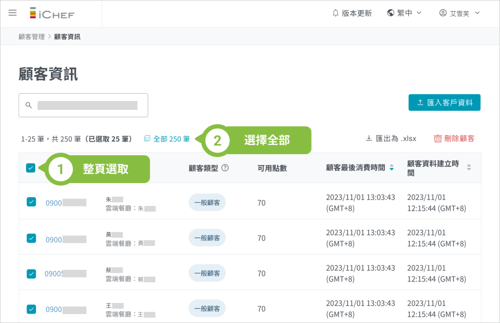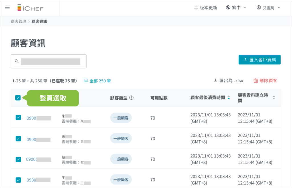 透過以下「選取」的方式一次處理多筆資訊。選取的內容會因搜尋、重新整理頁面、換頁等自動取消選取。